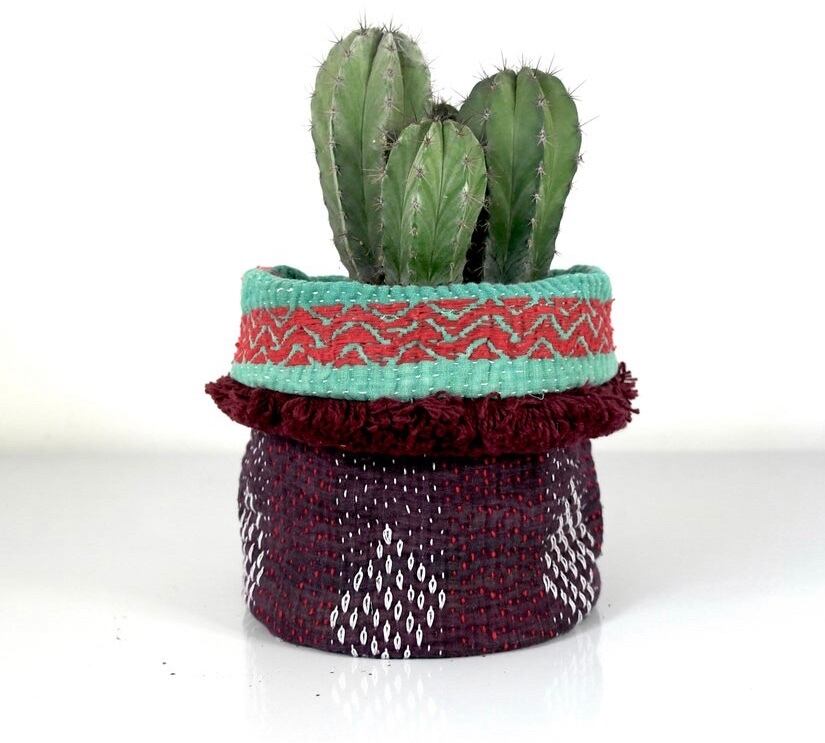 ポルトガルの作家さんによってリメイクされた、大変おしゃれな鉢カバーです。ヴィンテージカンタキルトをリメイクして作られています。もちろん小物入れとしても使っていただけます。リバーシブルになっていて、裏返すとガラッと雰囲気が変わります。