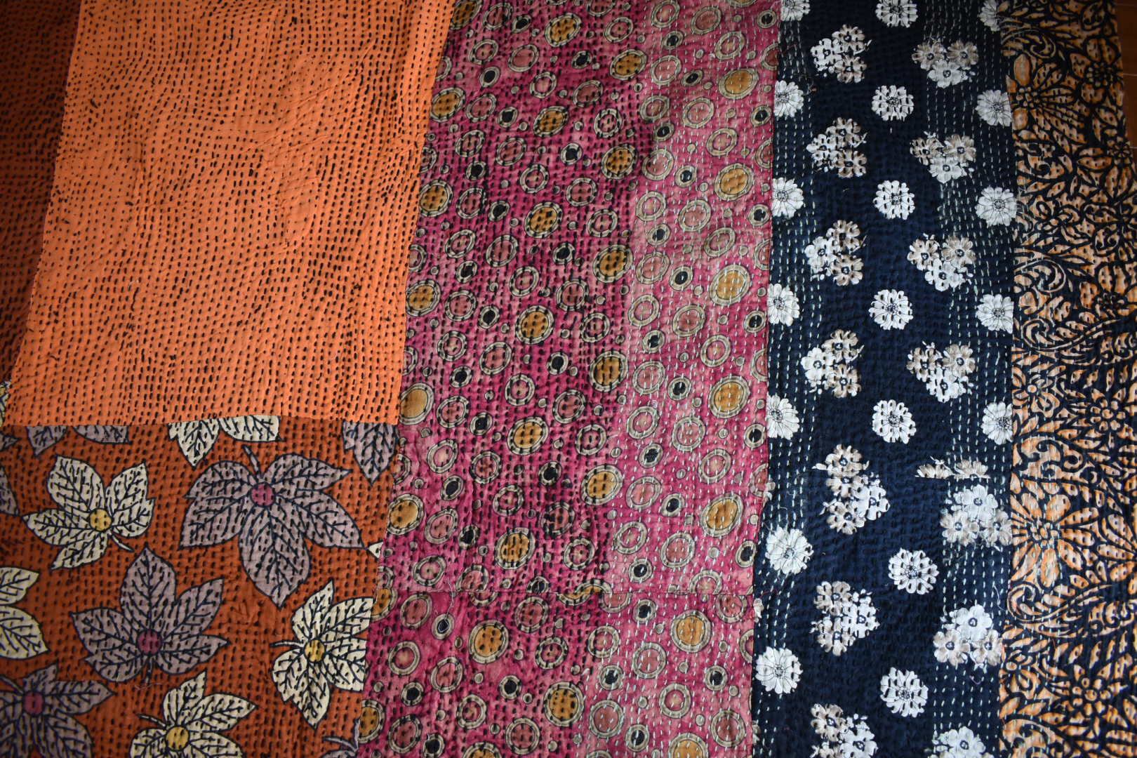モノトーン×秋色カラーのヴィンテージカンタキルト(192×135cm)