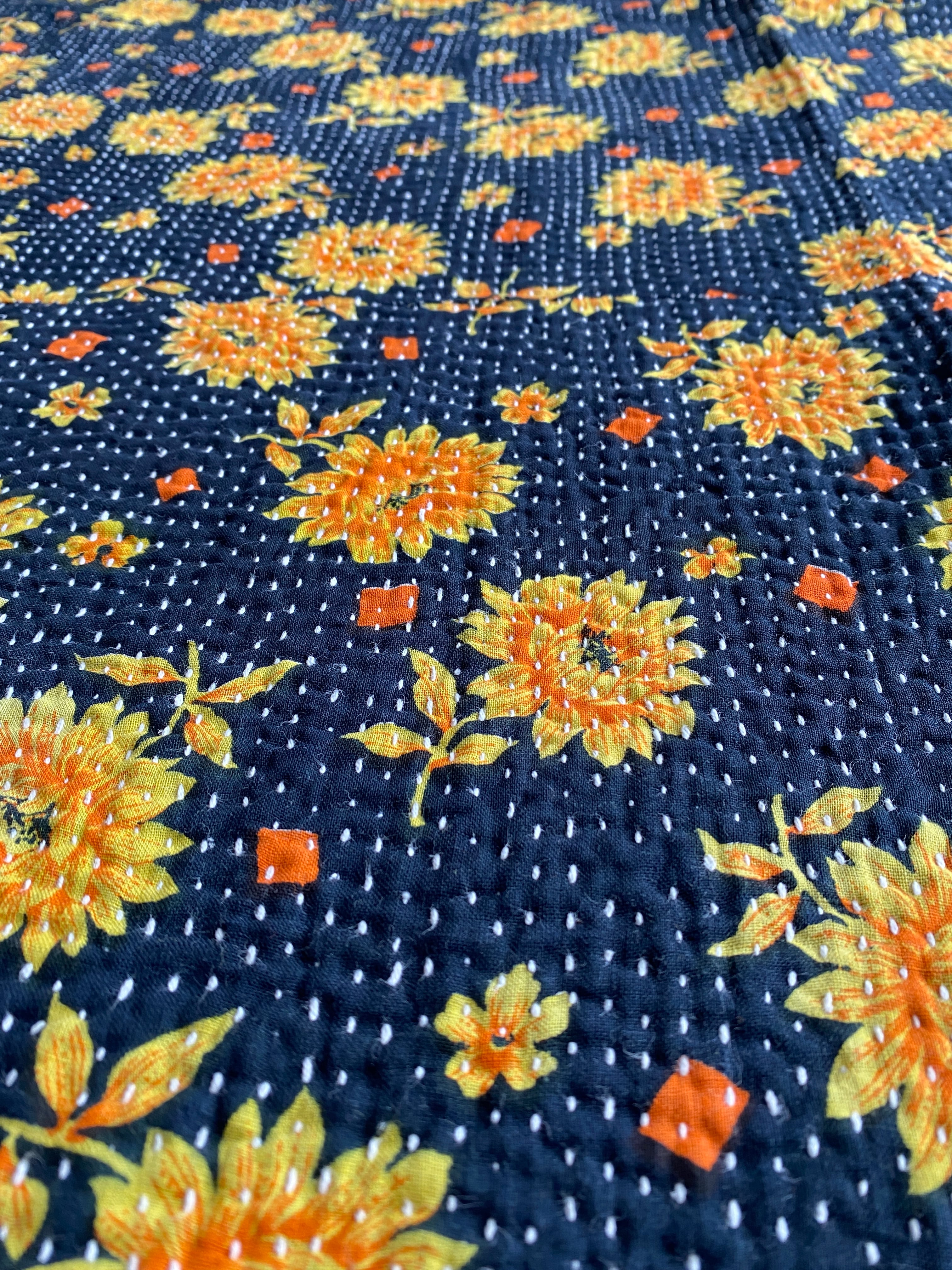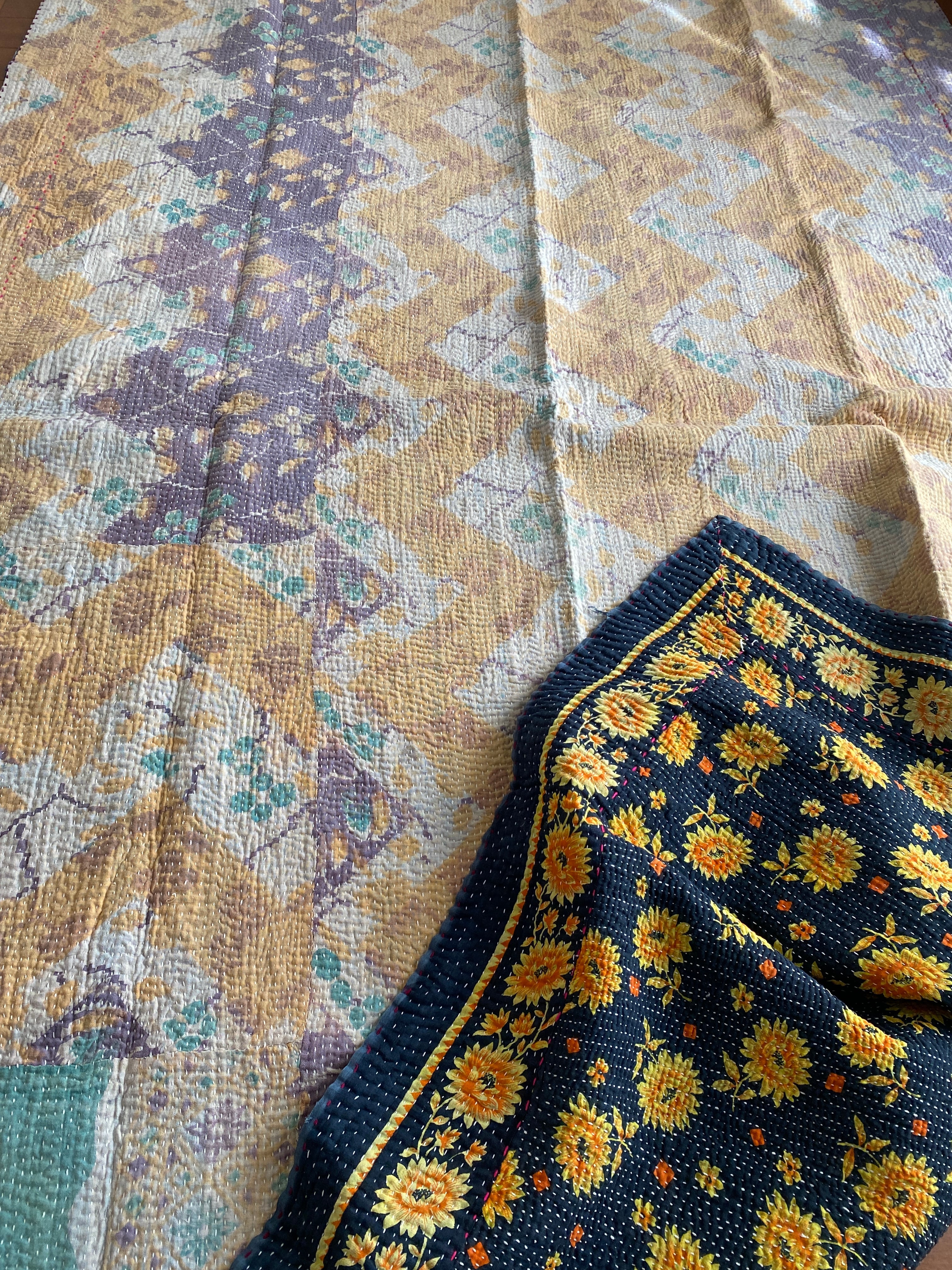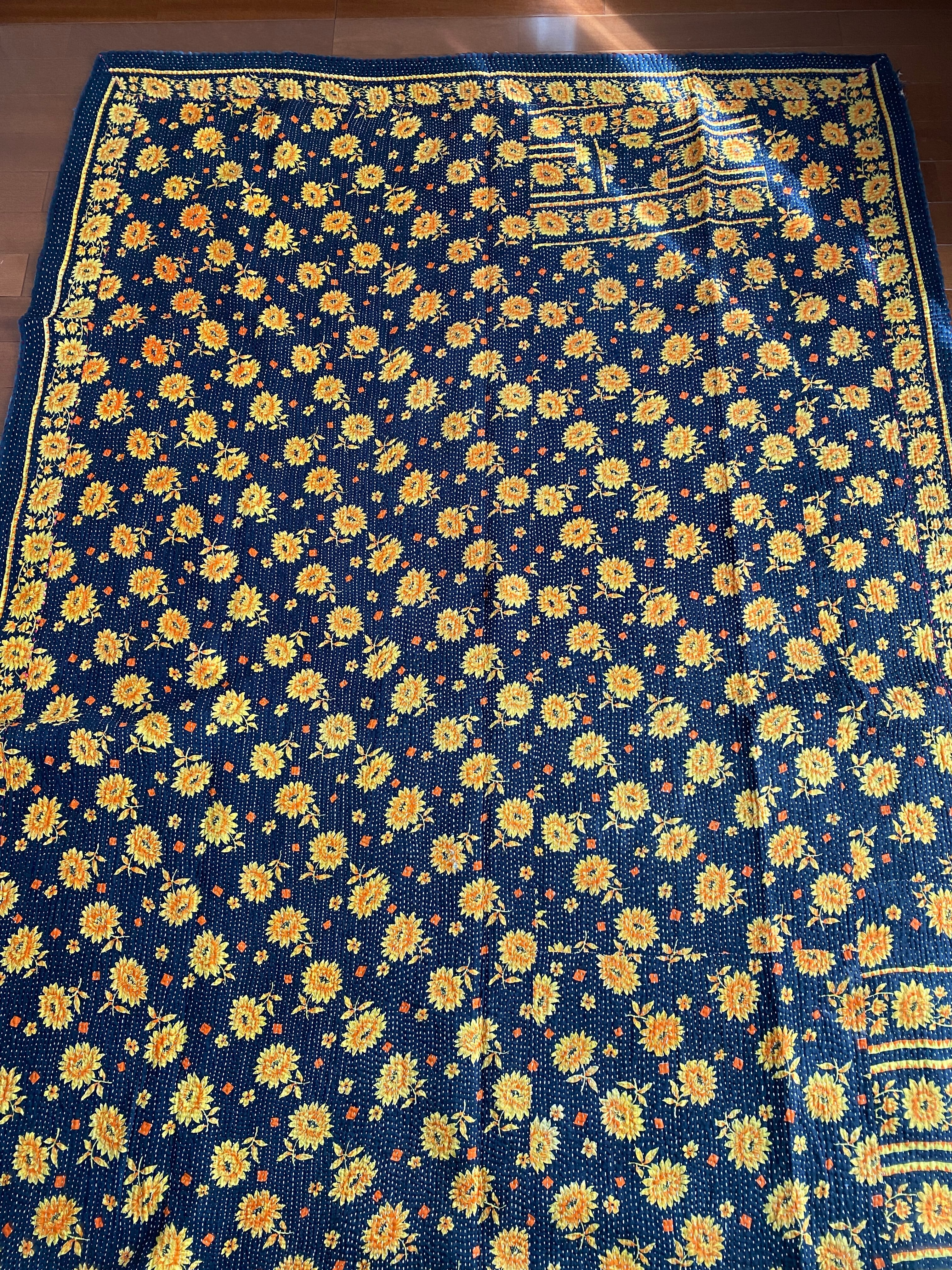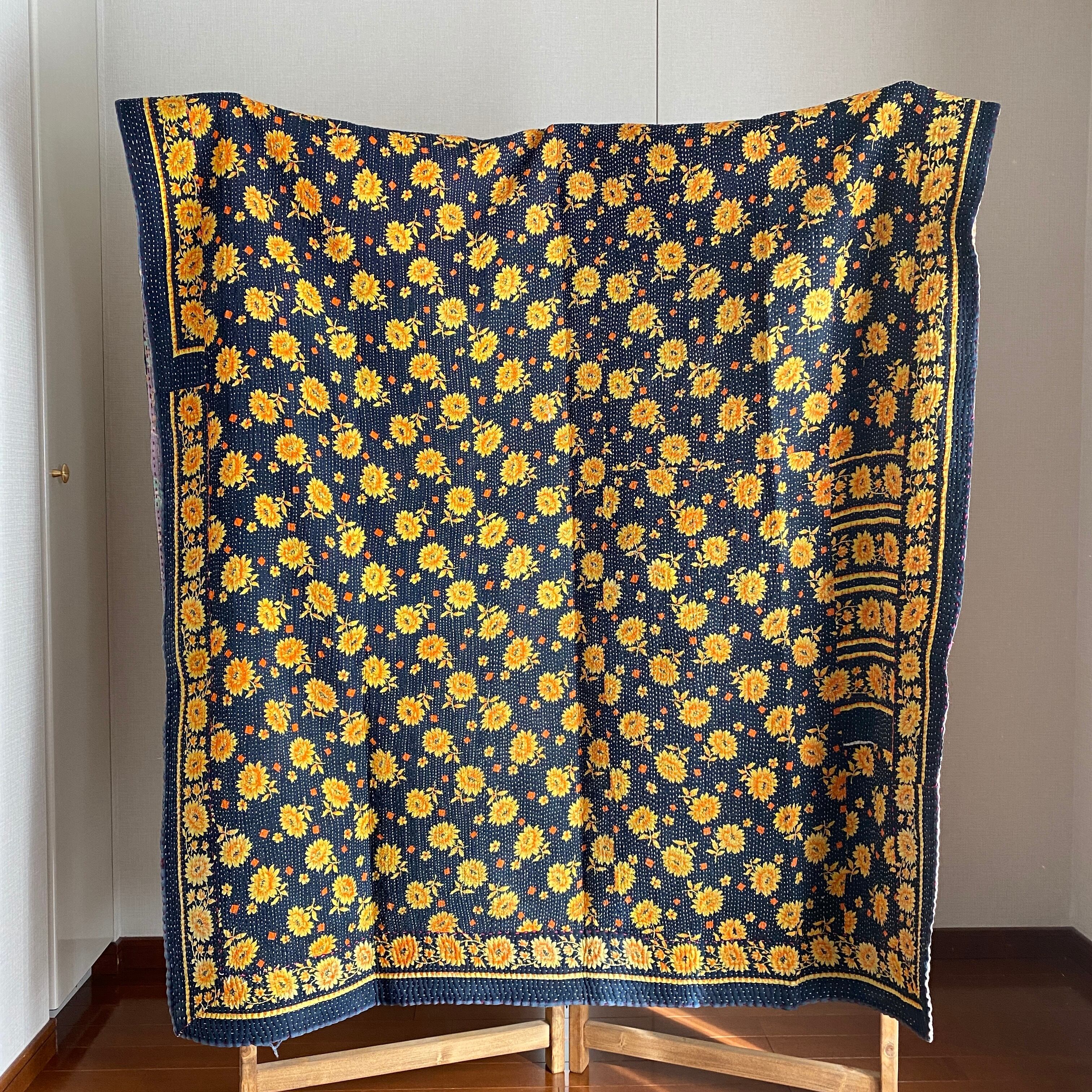 ふんわりパステルカラーと、キリリと締まる花柄 ヴィンテージカンタキルト