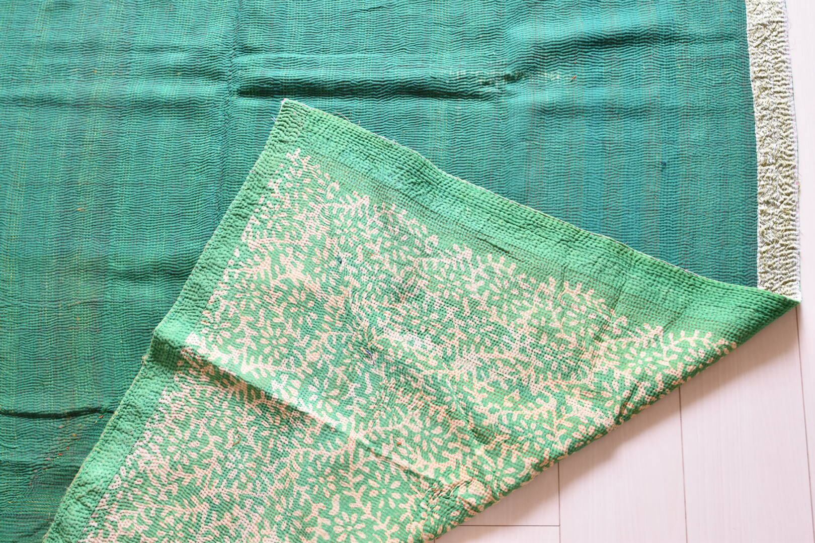 グラスグリーンのボタニカルプリントが爽やか ヴィンテージカンタキルト