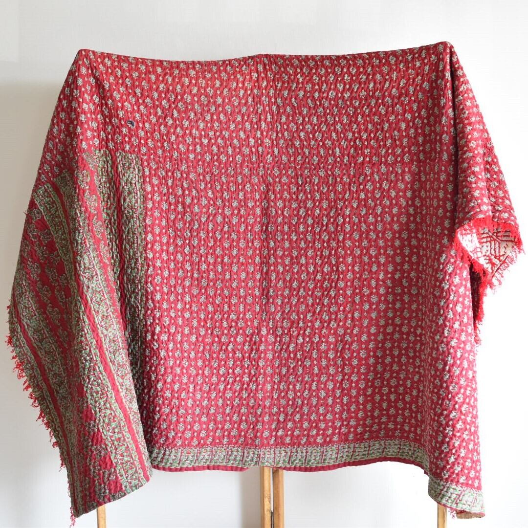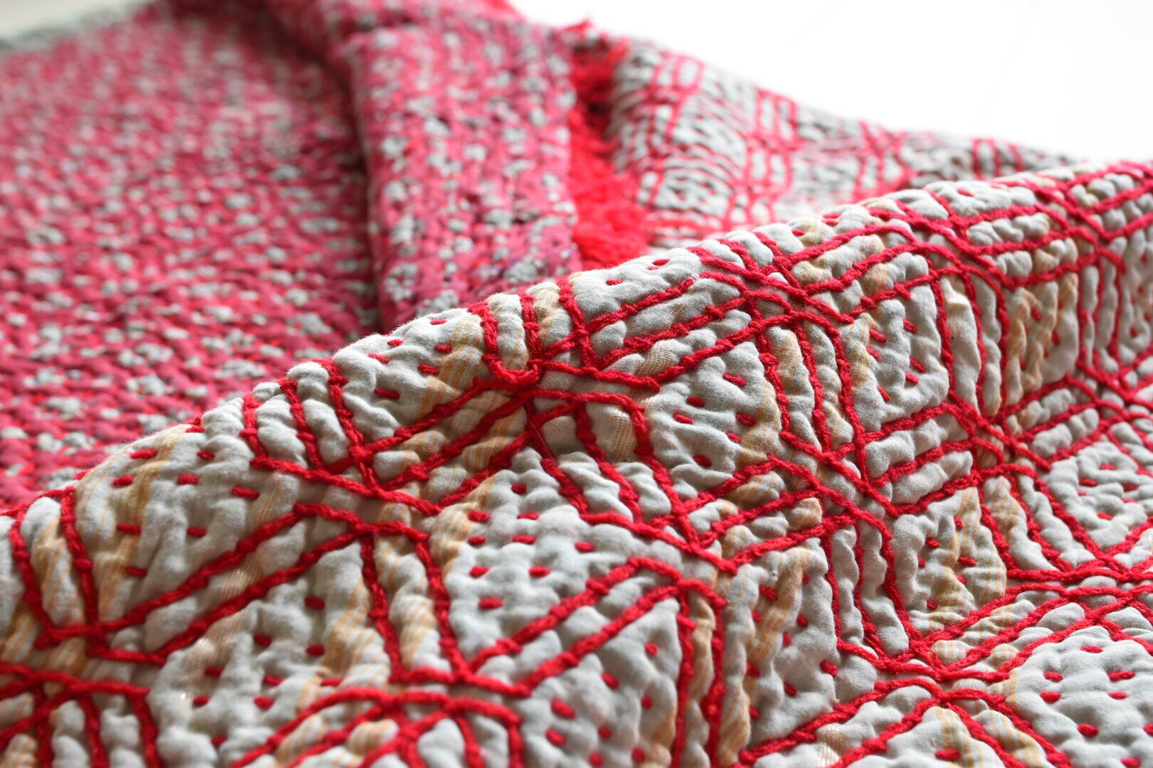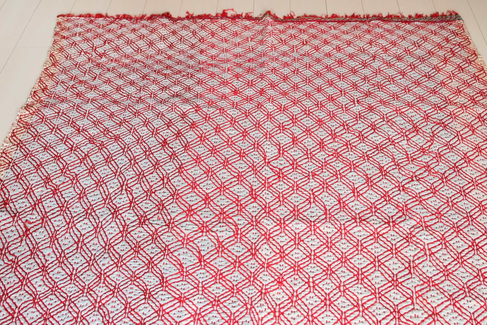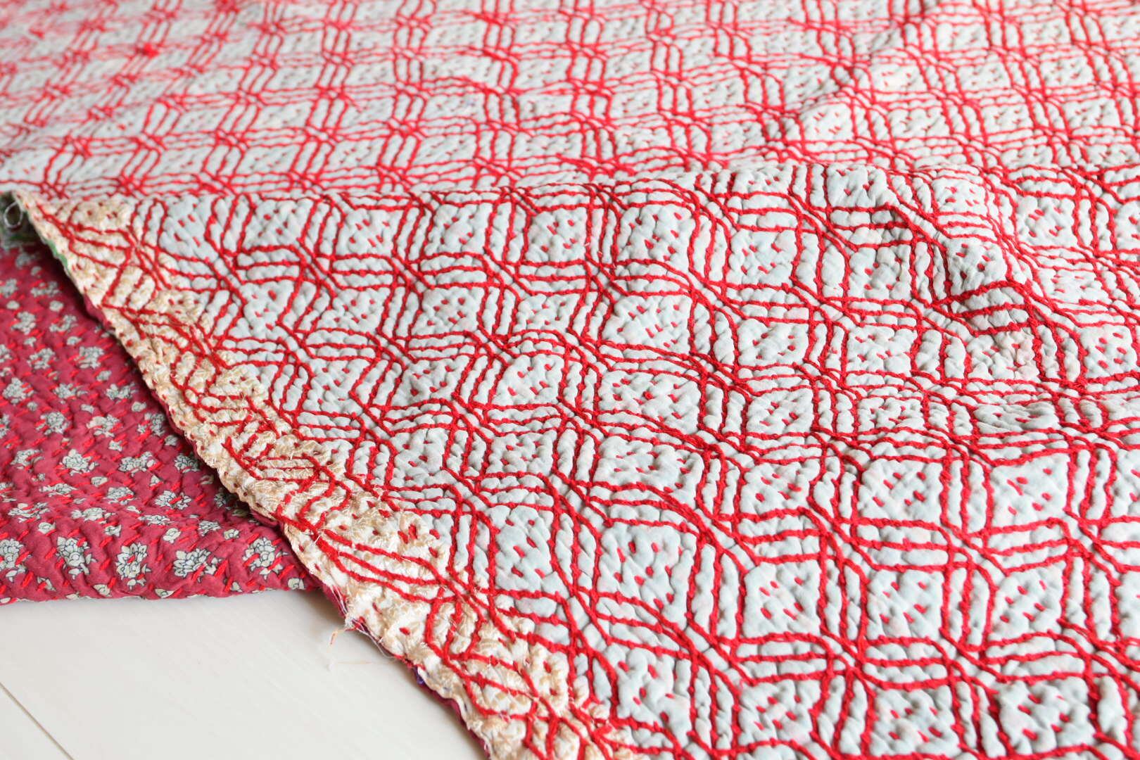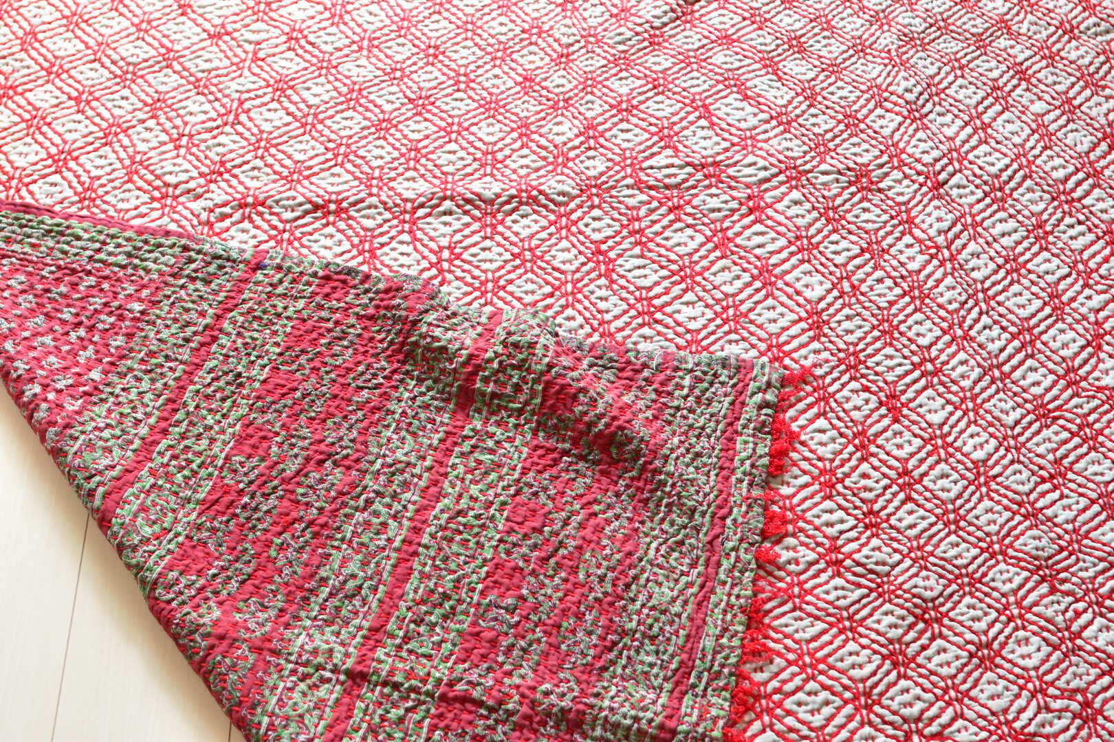真っ赤な全面ステッチ ほっこり可愛いヴィンテージカンタキルト