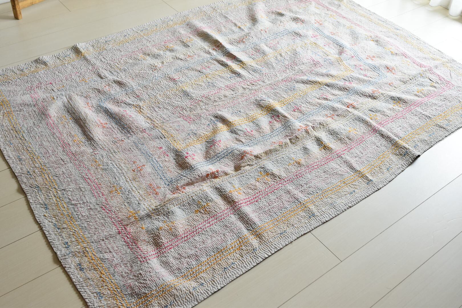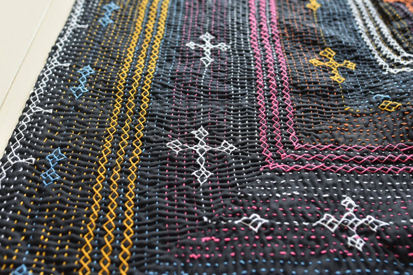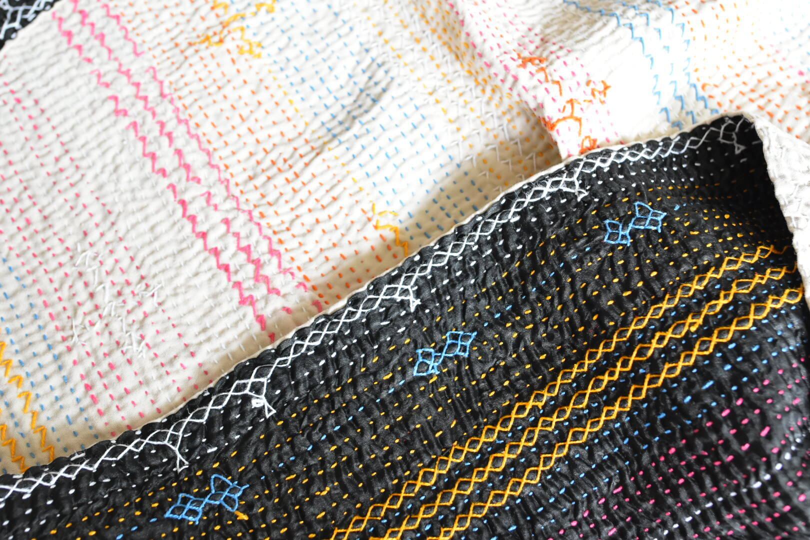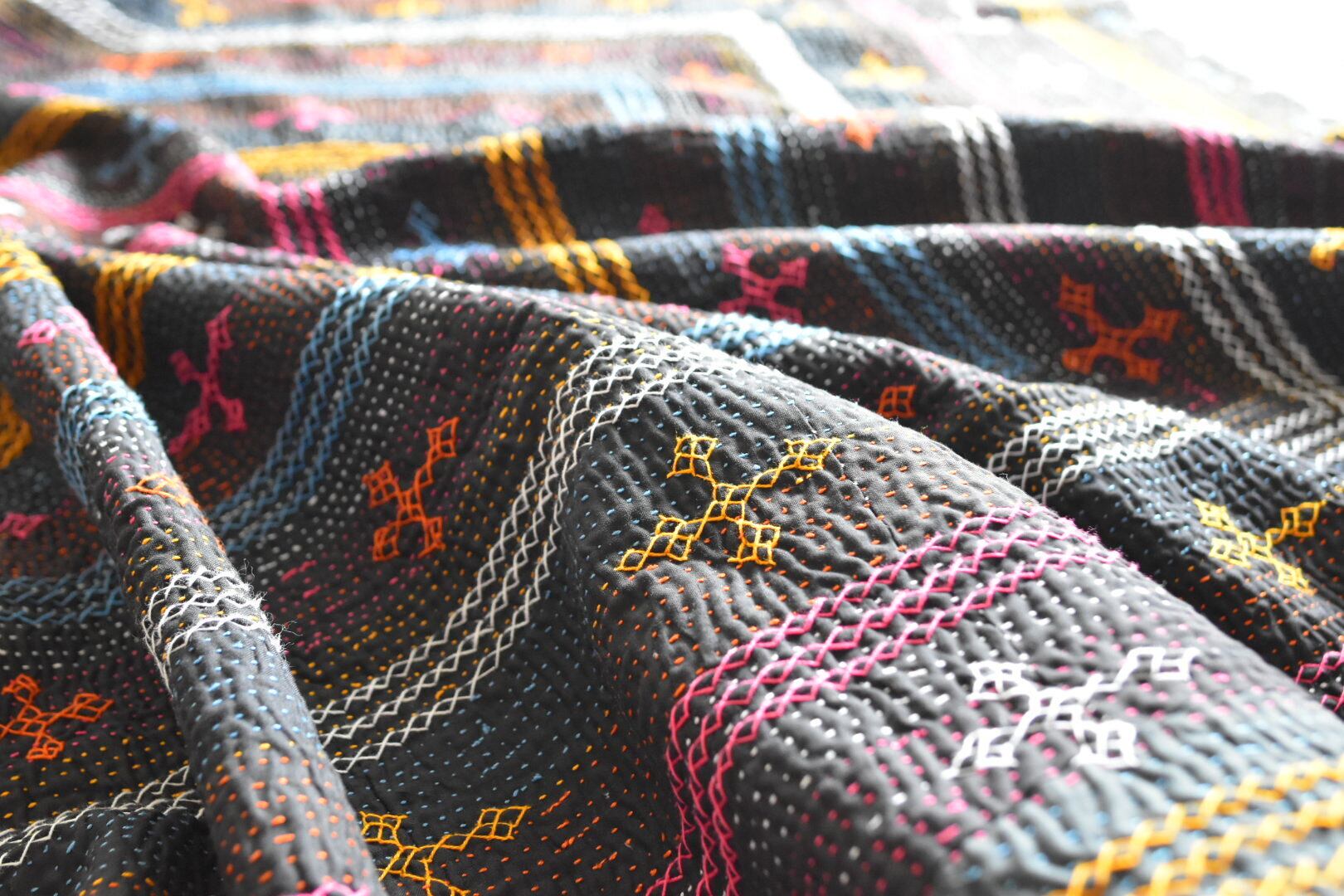 見事な刺繍ワーク 表裏のギャップにキュンとなる ヴィンテージサミカンタキルト