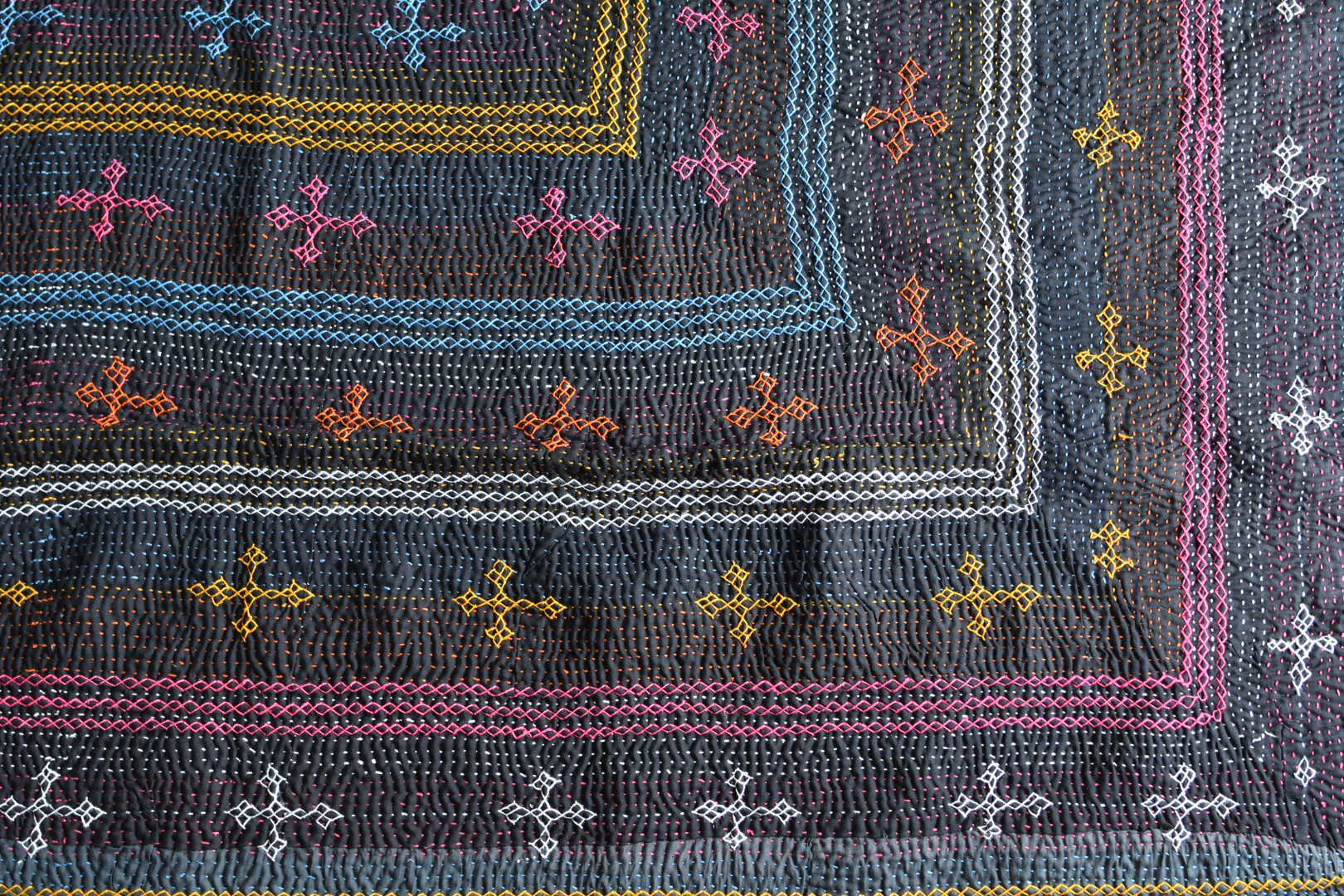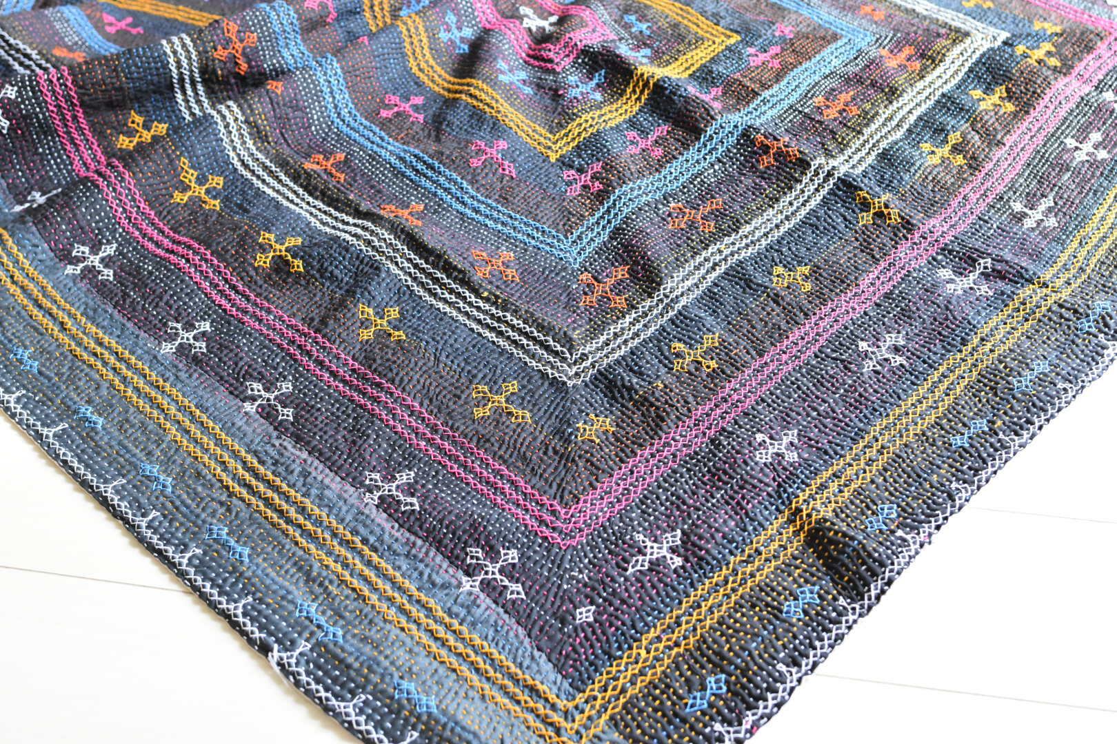 インドやパキスタンを移動する遊牧民サーミ族の人々によって作られた、全面刺繍のヴィンテージカンタキルトです。刺繍ワークがとにかく丁寧で美しく見事です。
