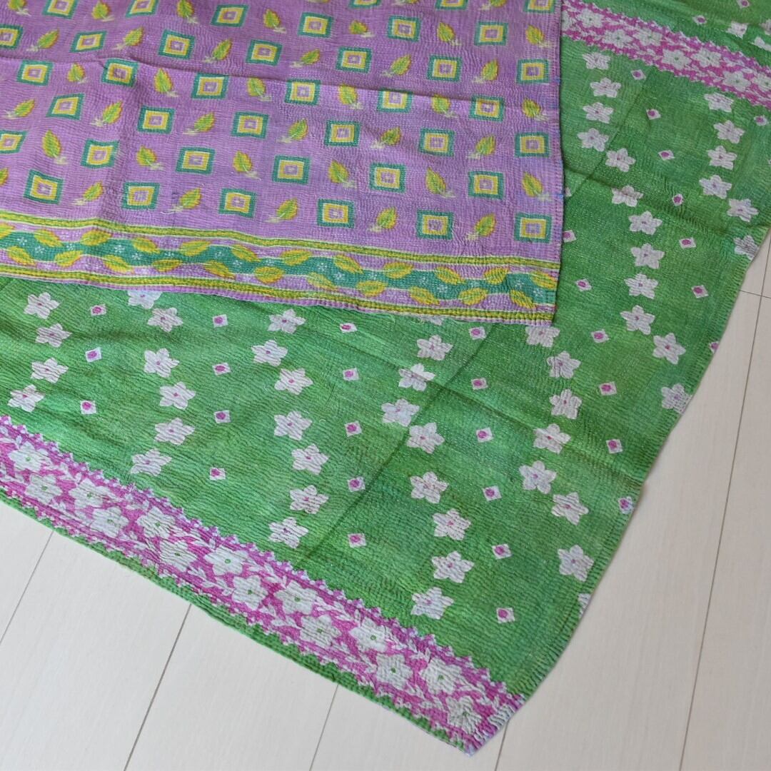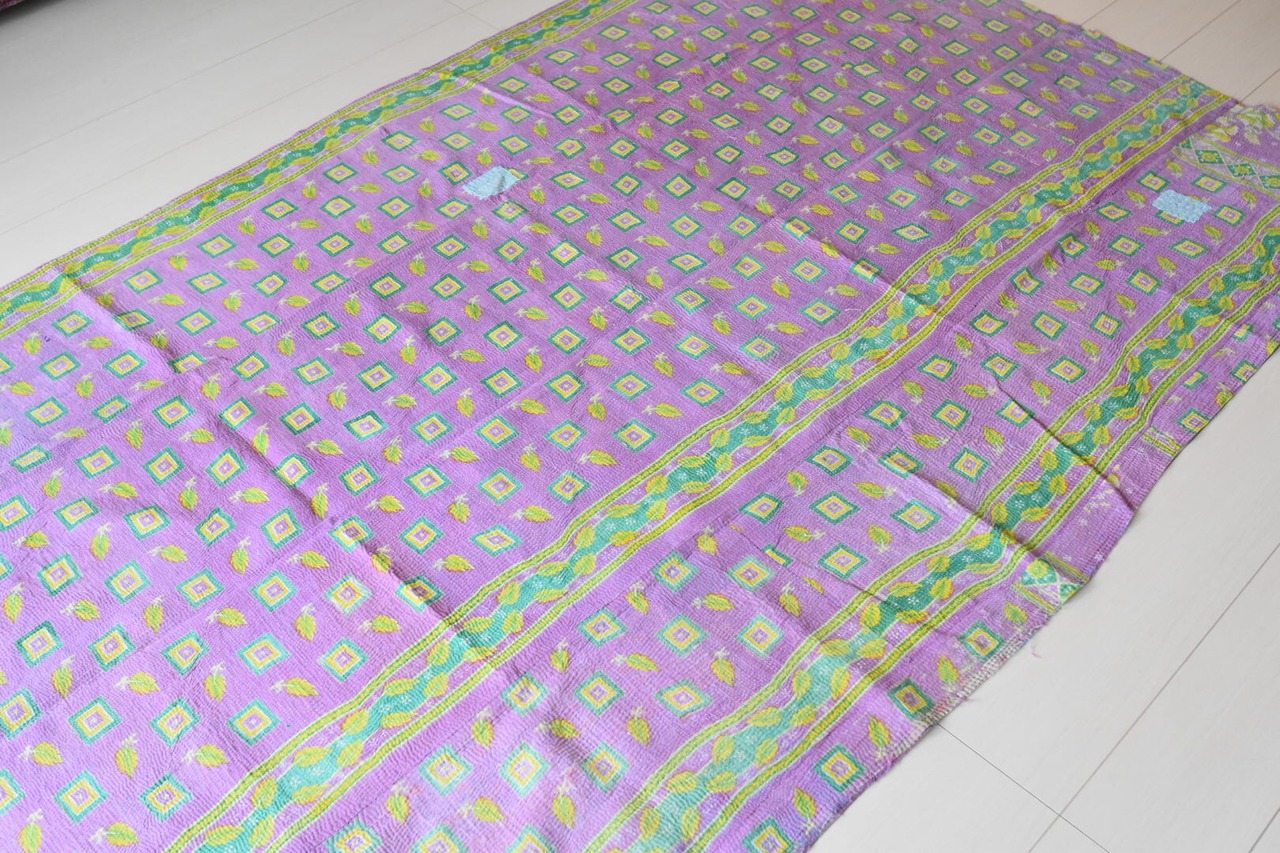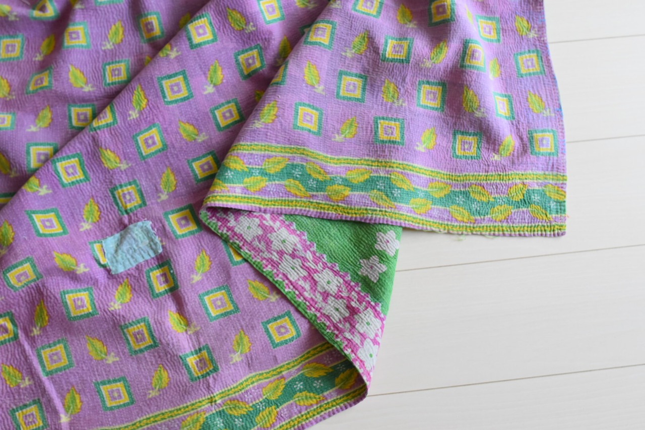 人気のライラックとフレッシュグリーンが爽快なヴィンテージカンタキルト