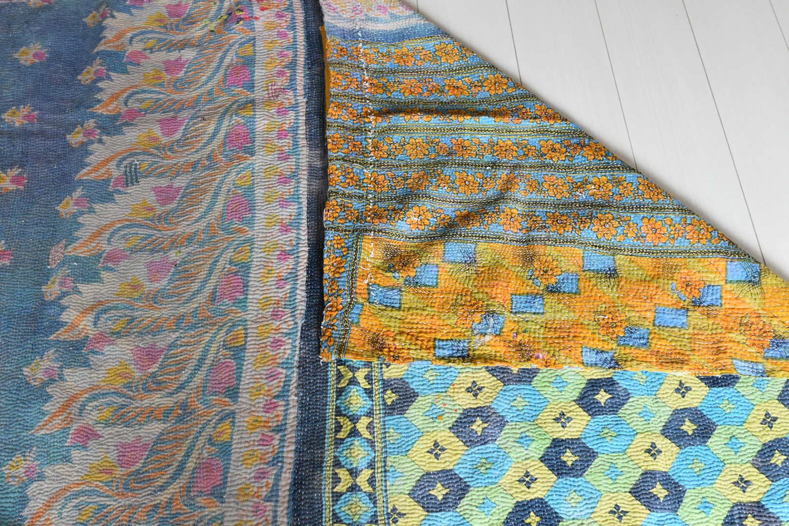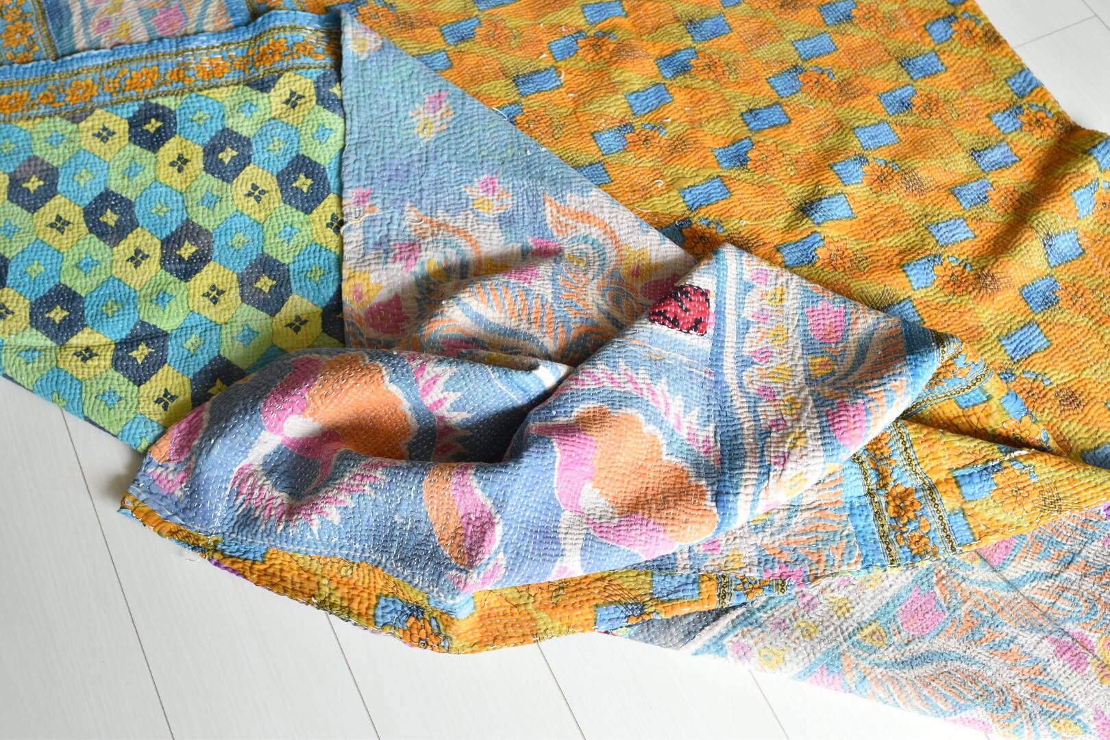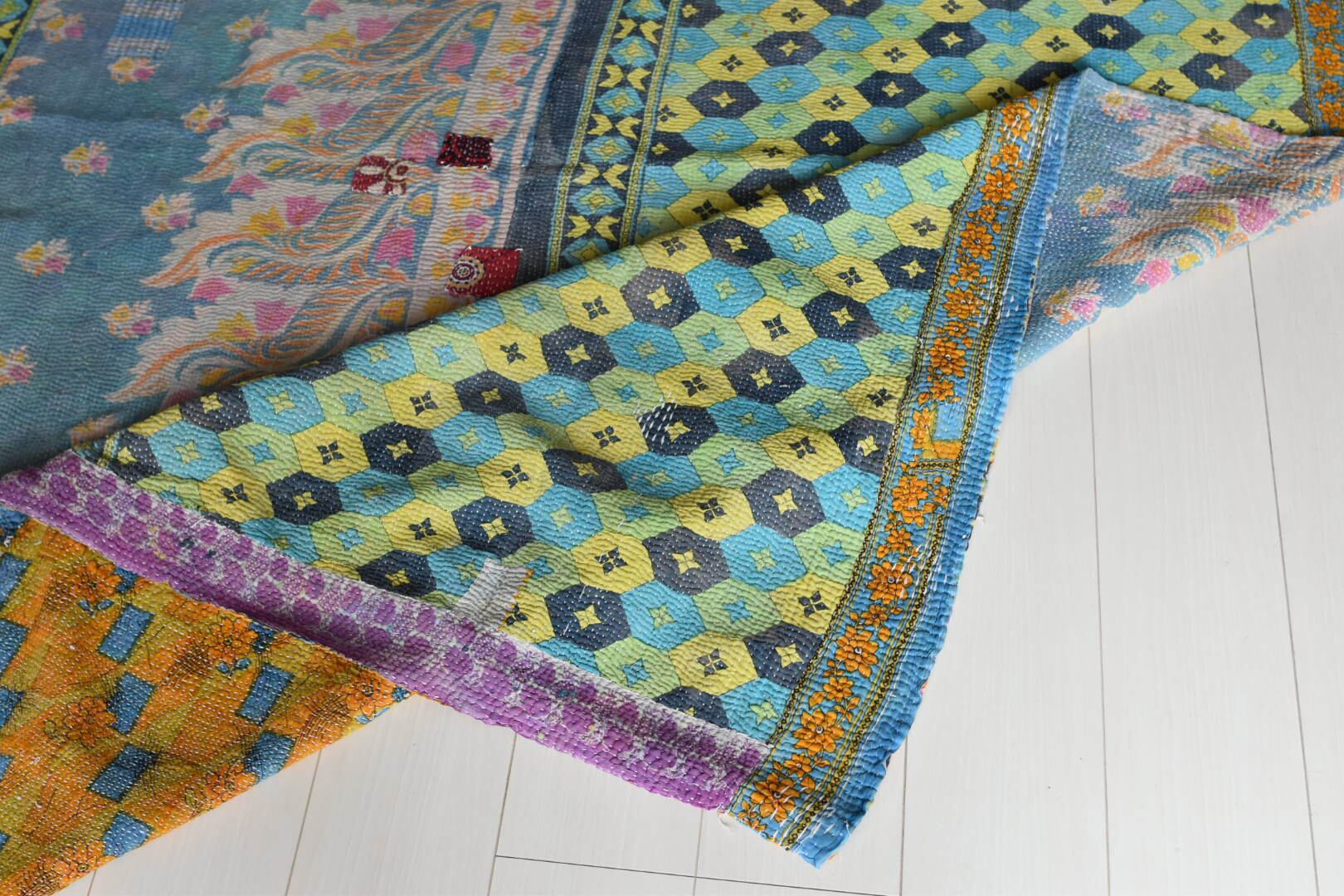 アイスブルーのレトロポップ 厚めのヴィンテージカンタキルト