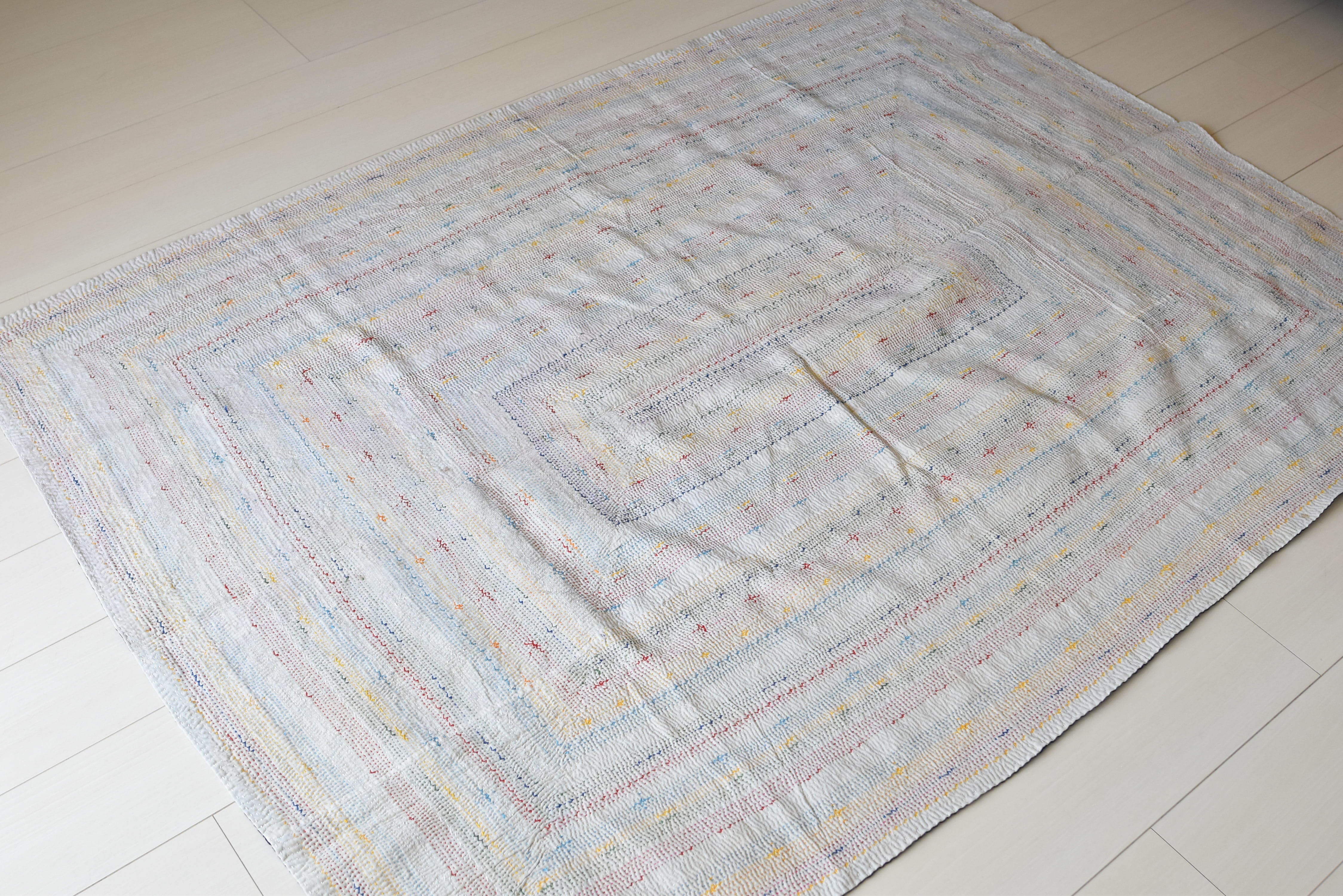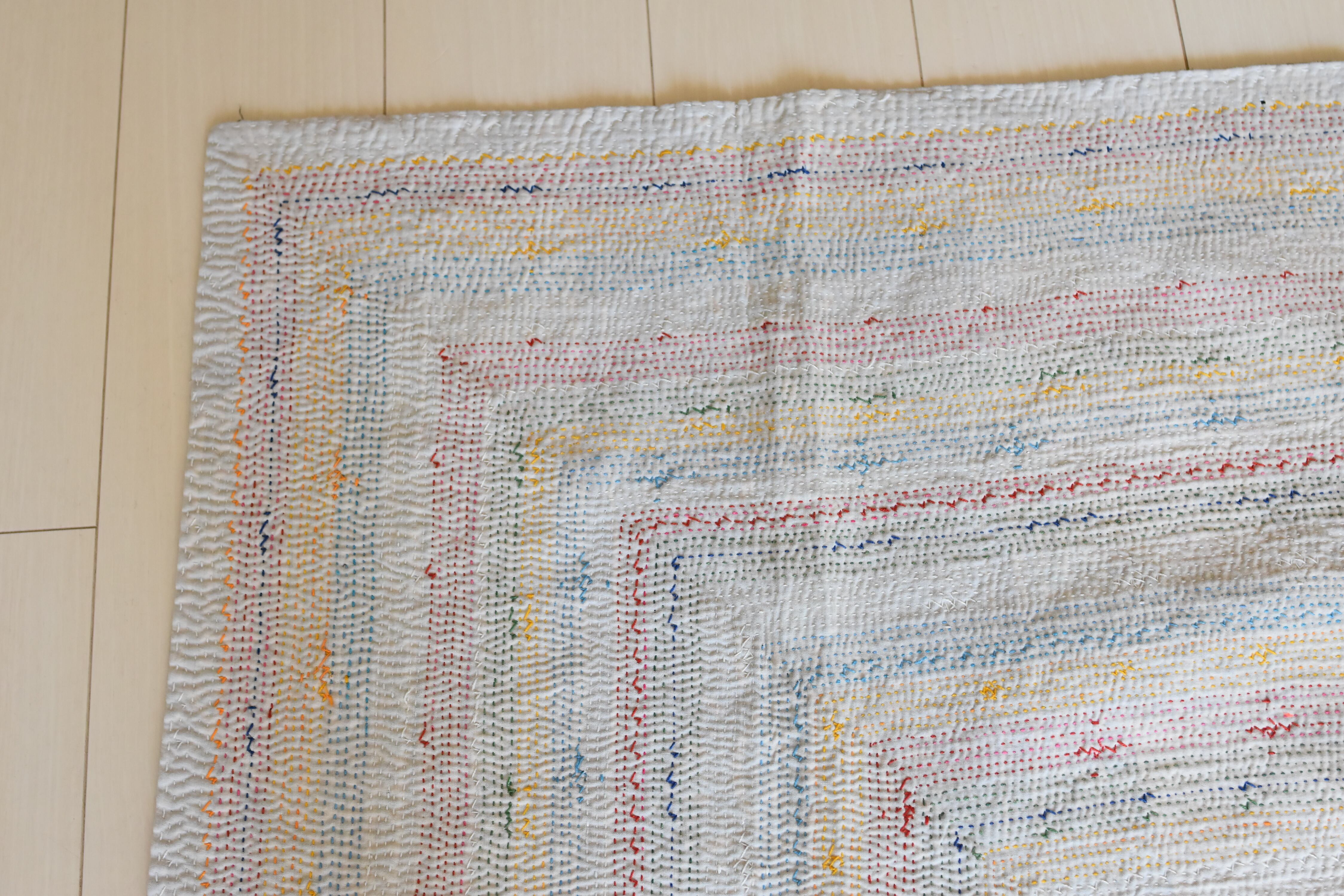 サミキルトとはインドやパキスタンを移動する遊牧民サーミ族の人々によって作られた、キルトです。キルト全体に細かい刺繍が規則正しく施されています。近年サミキルトの人気が高くなる一方、このような精緻な刺繍を施すことができる人は少なくなり、希少性が高まっています。