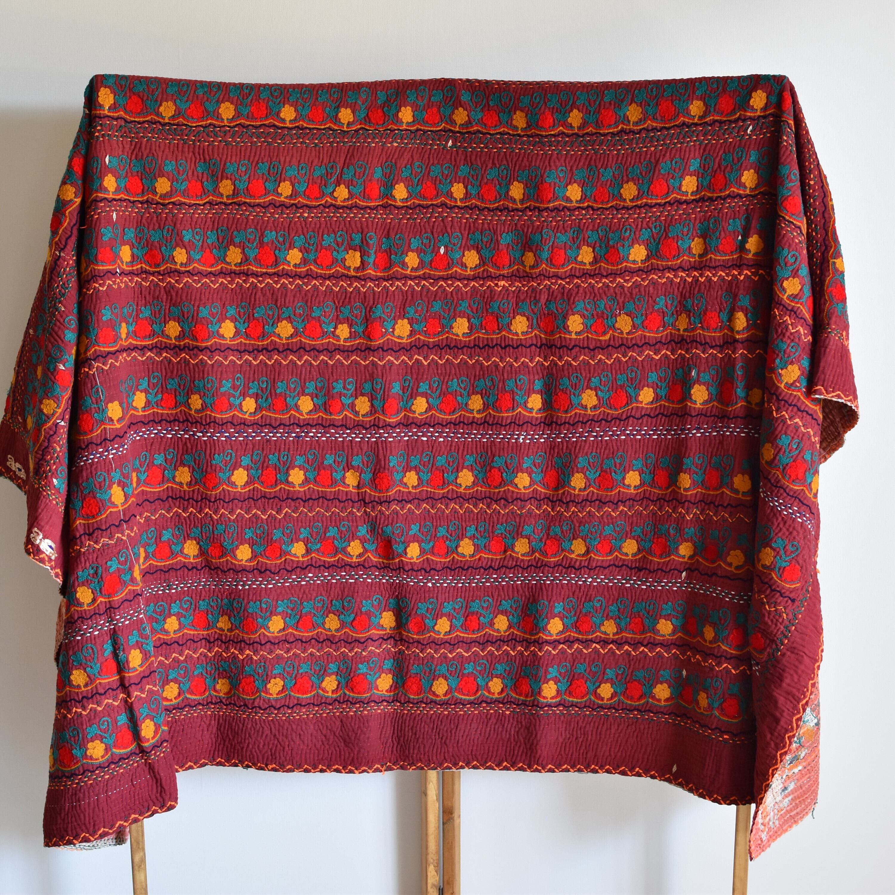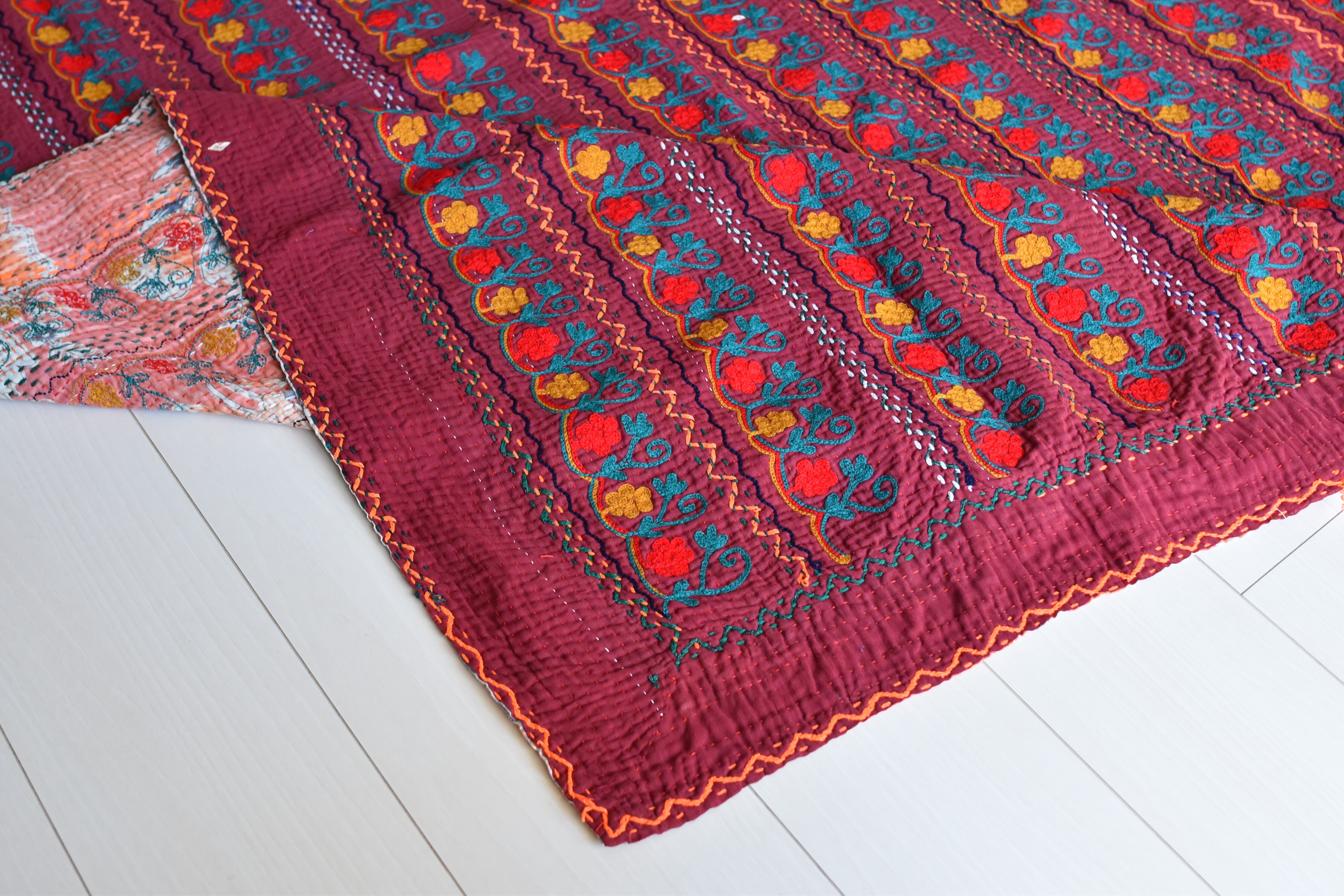 お花の刺繍にぬくもりを感じる ヴィンテージカンタキルト