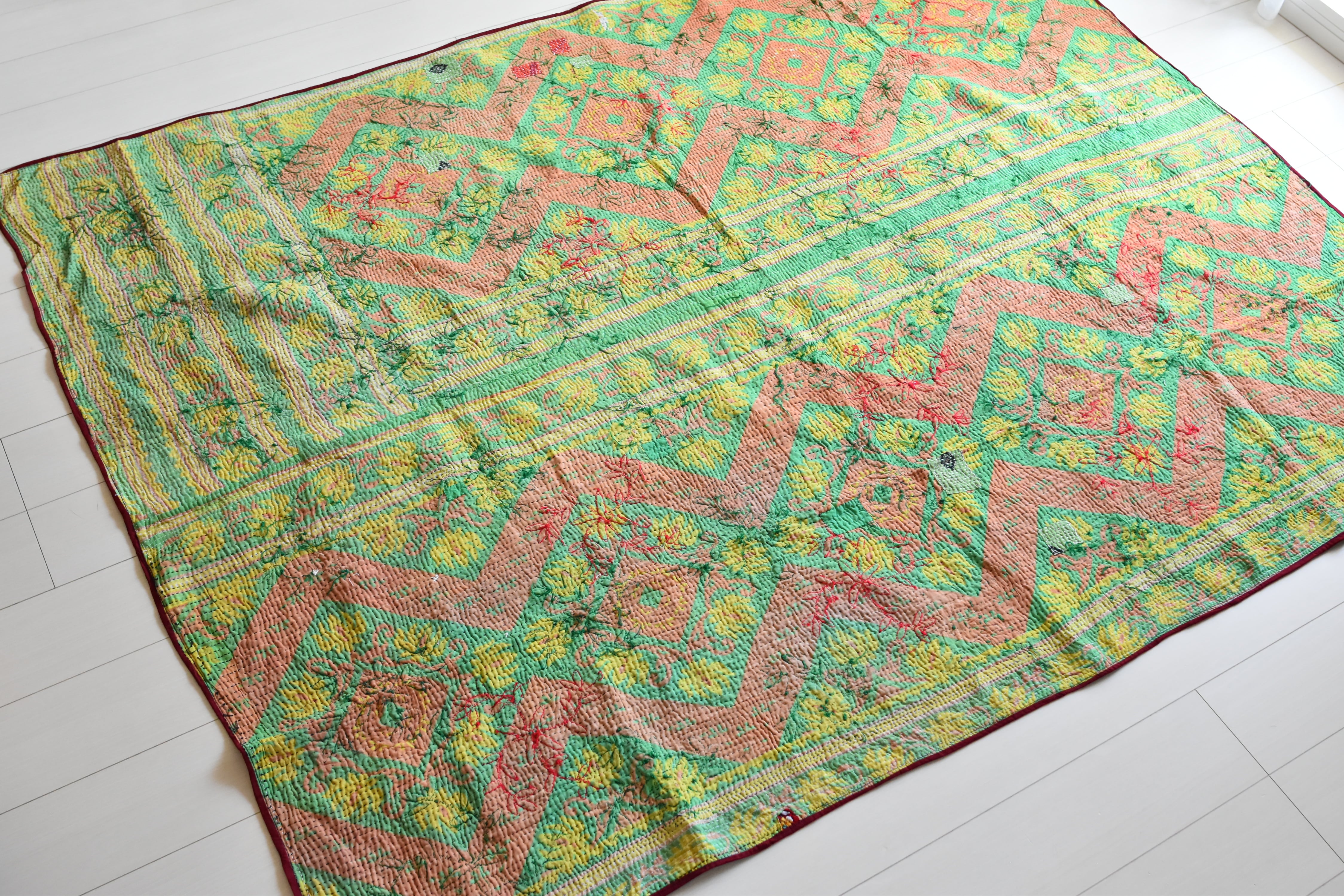 パッと明るい大判ラグ向けヴィンテージカンタキルト